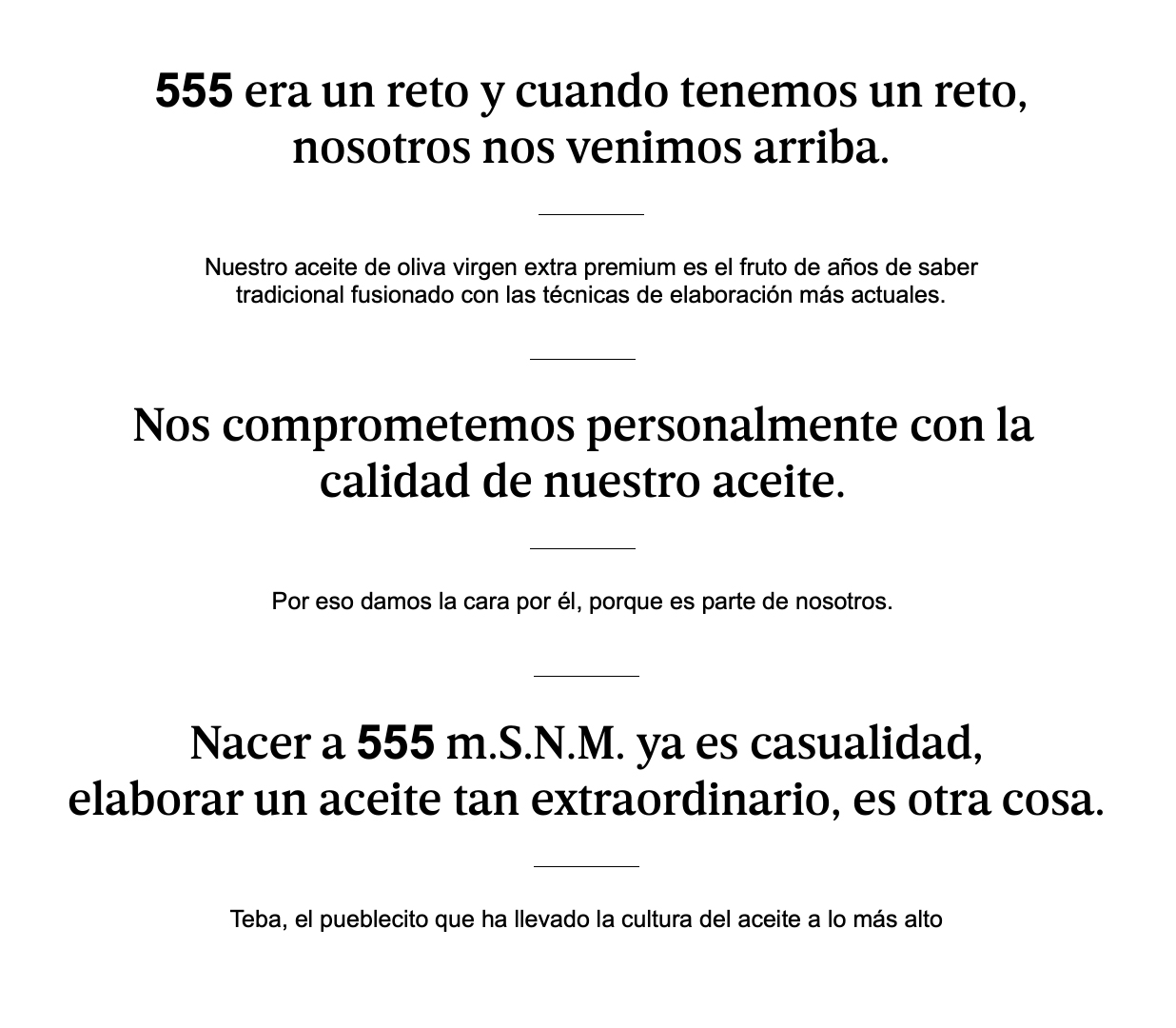 Nacer a 555 m sobre el nivel del mar ya es casualidad, elaborar un aceite tan extraordinario, es otra cosa. Creación de la voz y storytelling de un aceite premium de una cooperativa andaluza.