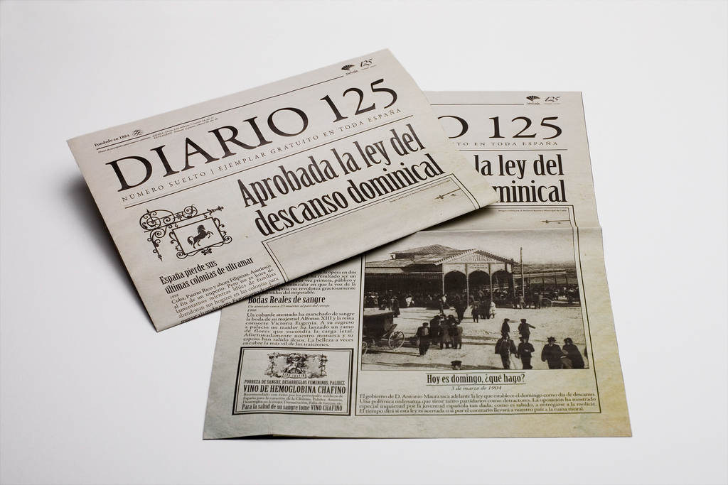 Unicaja cumplía 125 años y para celebrarlo montó una exposición itinerante interactiva. En El Cuartel desarrollamos esta campaña con acciones de street marketing. Pensé el concepto ¿Quieres vivir 125 años? y desarrollé los contenidos de un divertido periódico de la época que fue un éxito.